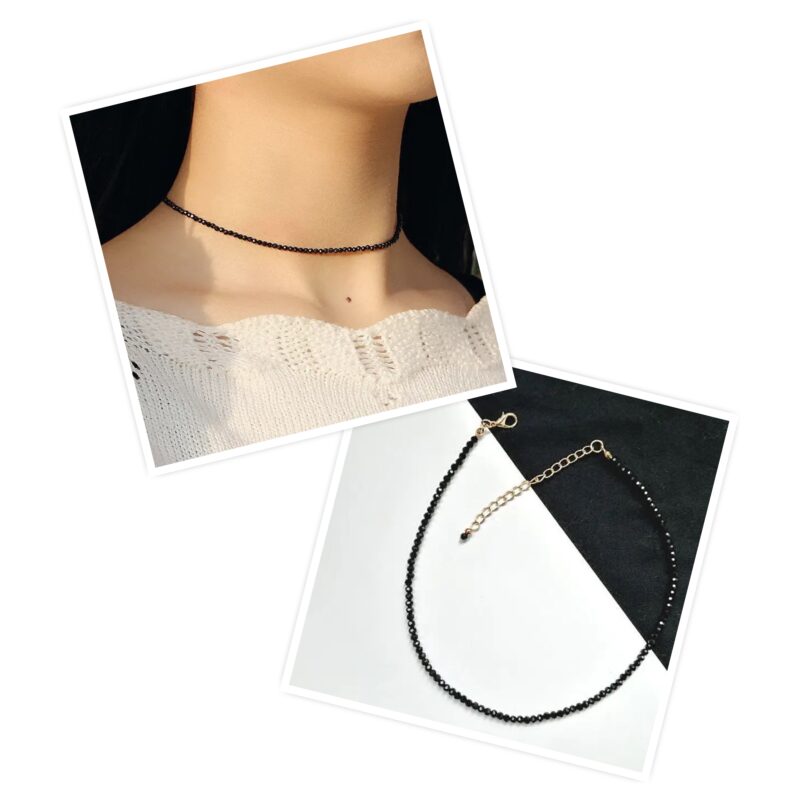 Нов и красив чокър с камъчета – Минималистично парче, което излъчва елегантност и простота. Този красив универсален чокър е направен от фасетирани кристали оникс, подредени нежно около шията ви, създавайки зашеметяващ визуален ефект. Чокърът с камъчета е универсален и може да се носи с всяко облекло, добавяйки нотка изтънченост към визията ви. Може да се съчетава с дълги синджири, колиета от перли и други. Независимо дали предпочитате бохо-шик атмосфера или елегантна и модерна естетика, този чокър е идеалният аксесоар за завършване на вашия ансамбъл. Така че, защо не прегърнете красотата на простотата и оставите чокъра с камъчета да бъде централната точка на вашата колекция бижута?