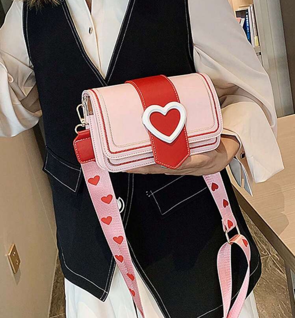 👜 Дръжка: Регулируема, с красив принт на сърца