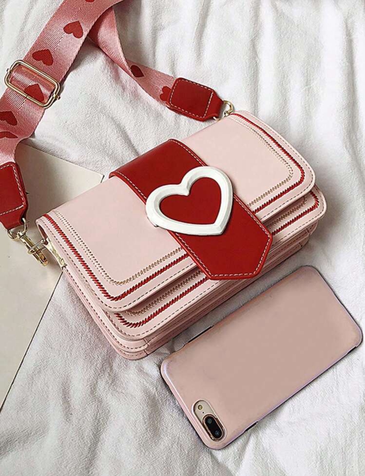 🌈 Цвят: Светлорозово с червени акценти и бяло сърце
